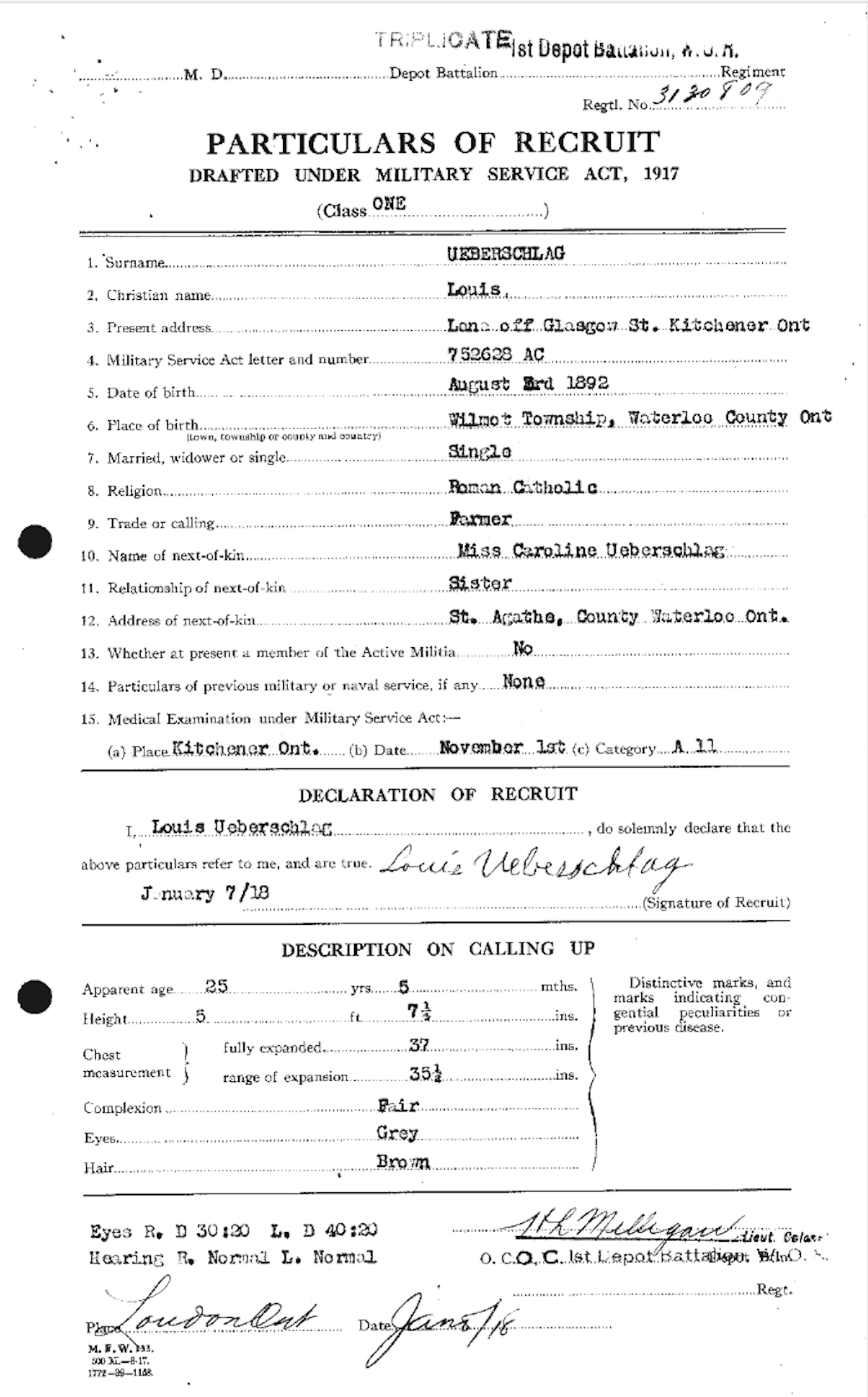 Home » Wilmot Township » Other Veterans of Wilmot » Ueberschlag, Louis
